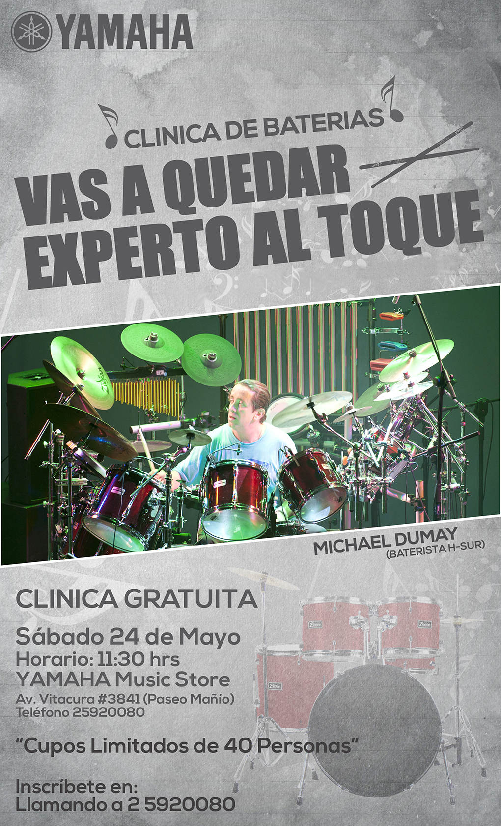 Participated in a Yamaha Drum Clinic with Akira Jimbo at Instituto del Pacífico, Santiago, Chile.